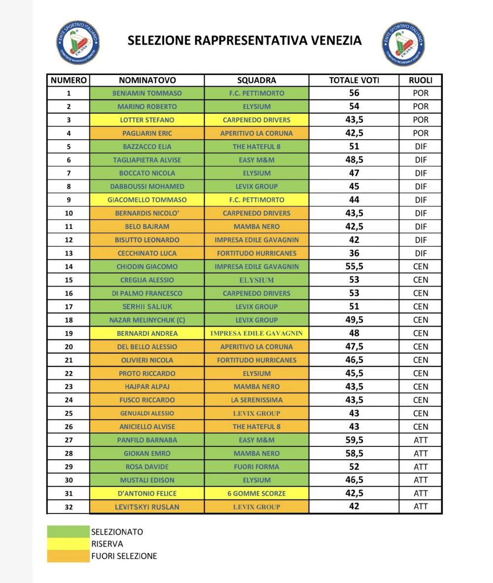 Ieri Sera a Venezia, presso lo Sporting Club Mestre, sono stati invitati, per le selezioni, 32 tra i migliori Giocatori Partecipanti al Campionato di Calcio a 8 di Serie A, Serie B e C.